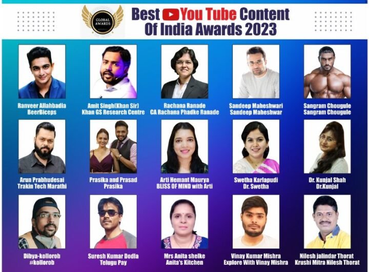 The winners of the Best YouTube Content of India Awards 2023 New Delhi (India), April 17: Global Awards...