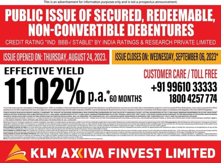 Kochi (Kerala) [India], August 28: KLM Axiva Finvest Ltd has announced the Company’s ninth public issue of...
