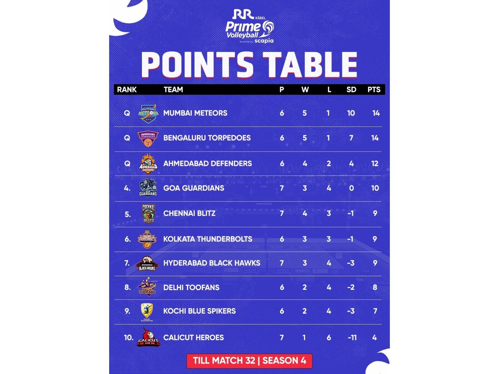In the fourth set, two critical reviews went in Mumbai’s favour, further boosting their advantage. Perotto and Jerome kept Chennai in the fight with solid attacking plays. However, at a decisive moment, Karthik and Shubham combined perfectly to block Tarun, earning Mumbai an important point. The thrilling set concluded with Shubham’s emphatic super spike, sealing a memorable 3–1 victory for the Meteors, who now advance confidently into the Semi-Finals.